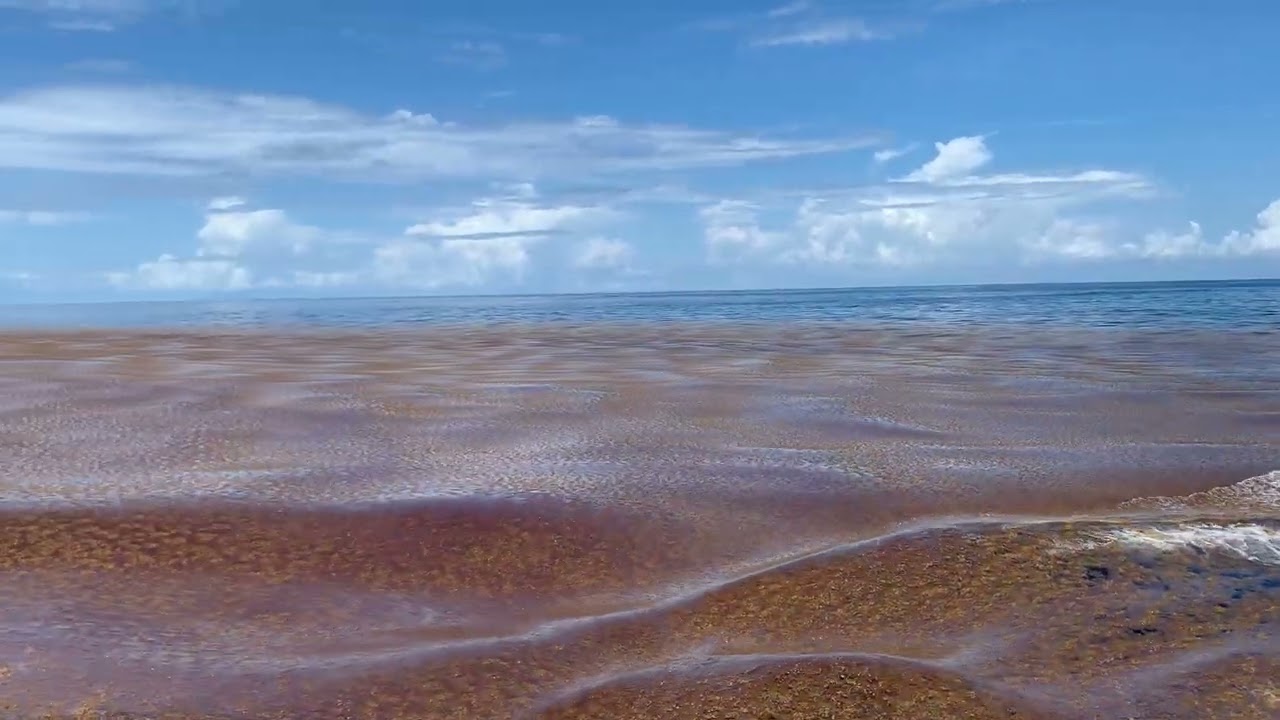 Sargassum is a type of floating brown seaweed found in the Atlantic Ocean. It forms large mats that drift with ocean currents and can wash up on beaches in significant amounts. While it plays an important role in marine ecosystems by providing shelter for fish and other sea life, excessive amounts can be a nuisance when they accumulate along coastlines.